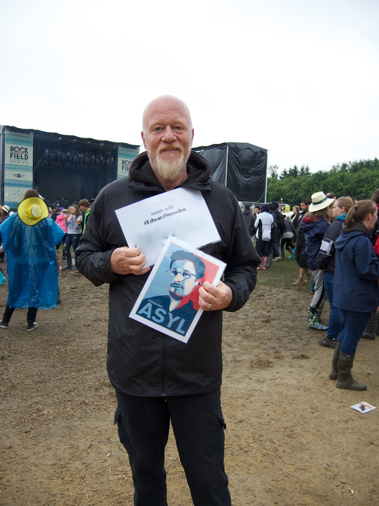 For a lot of people living in Luxembourg it already became a tradition to head out on the field for the Rock-A-Field every year in Roeser. But this year was kind of special. I wanted to bring a piece of (h)acktivism with me and use the opportuniy to talk to people about Edward Snowden.