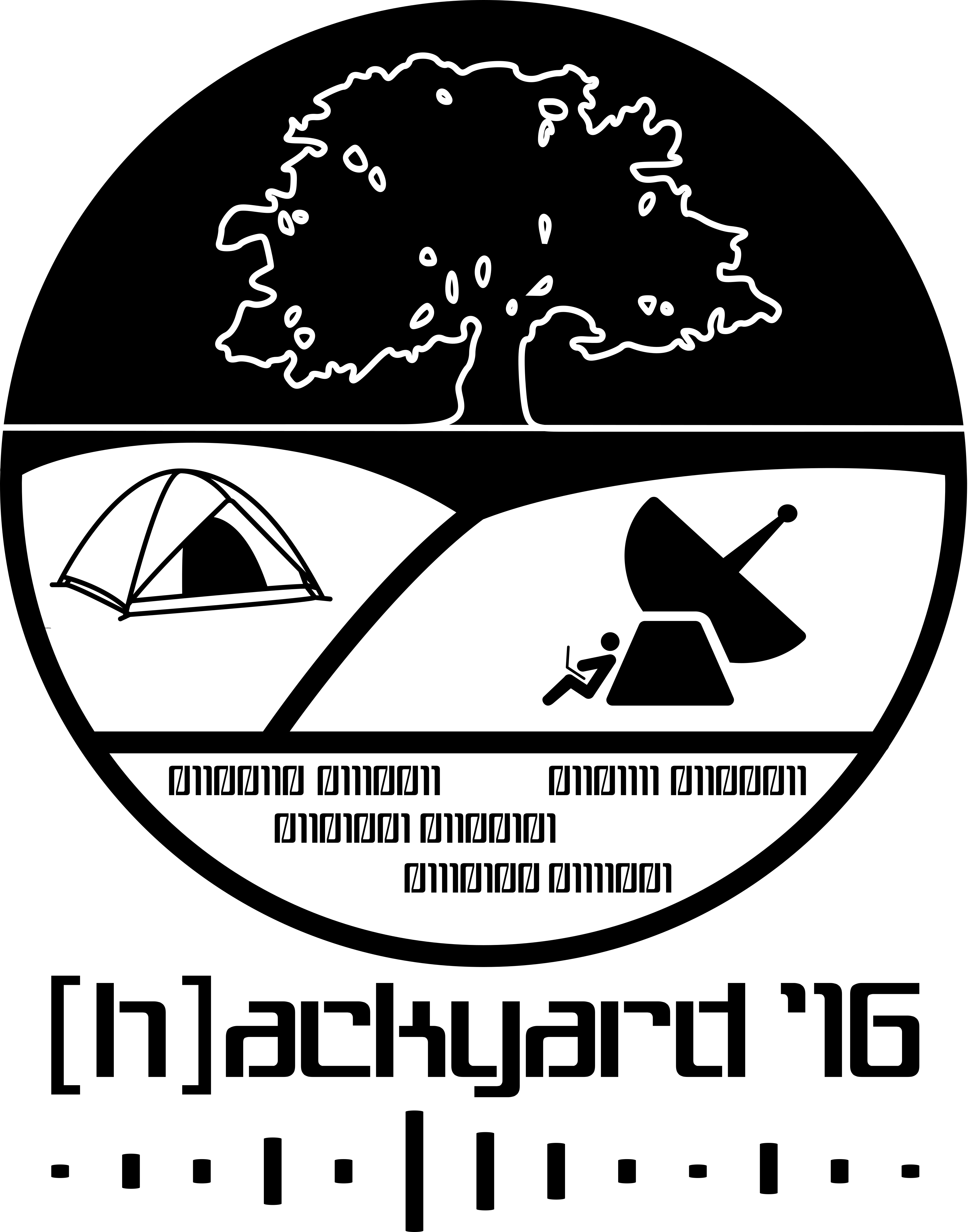 hackyard Logo: The basic landscape is by Freepik , the tent by Matt Kern, the satelitte dish by Paul Tynes, the coder by TukTuk Design and the wave by Ralf Schmitzer. The modifications have been made by Jan GUTH. Licensed under CC BY-NC-SA 4.0 International
