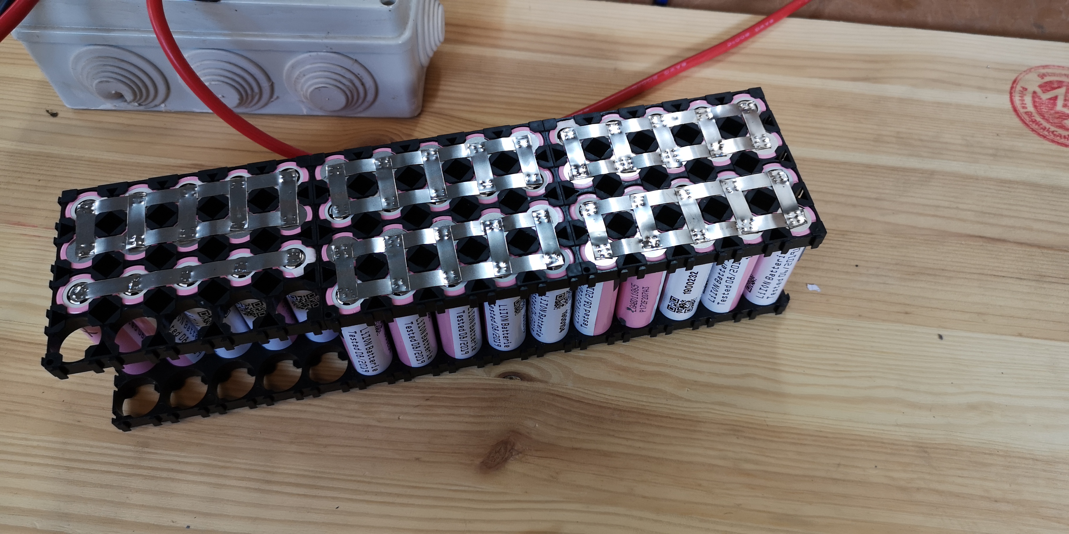 - alte Li Ion 18650 Zellen (in diesem Fall 55 Stück)