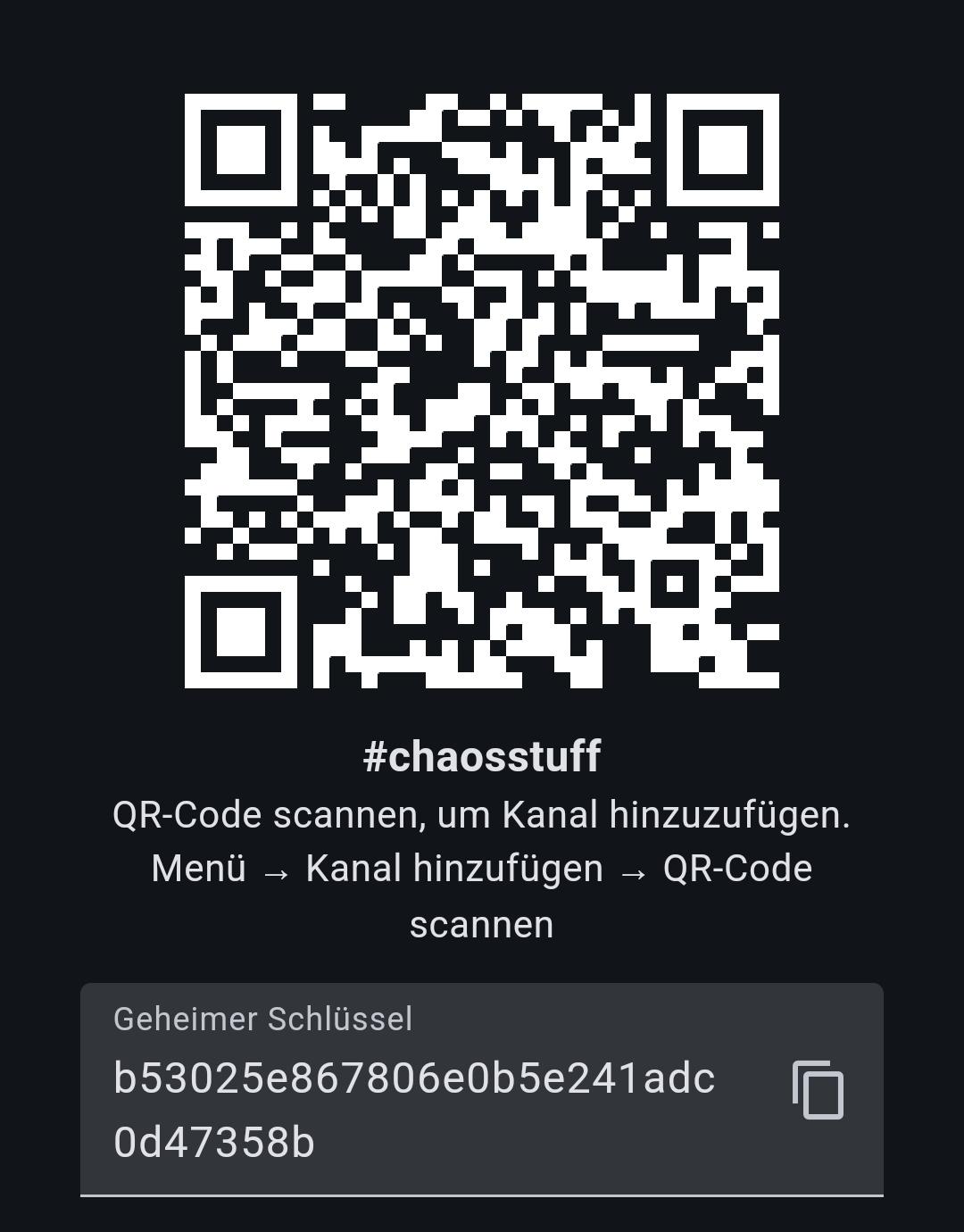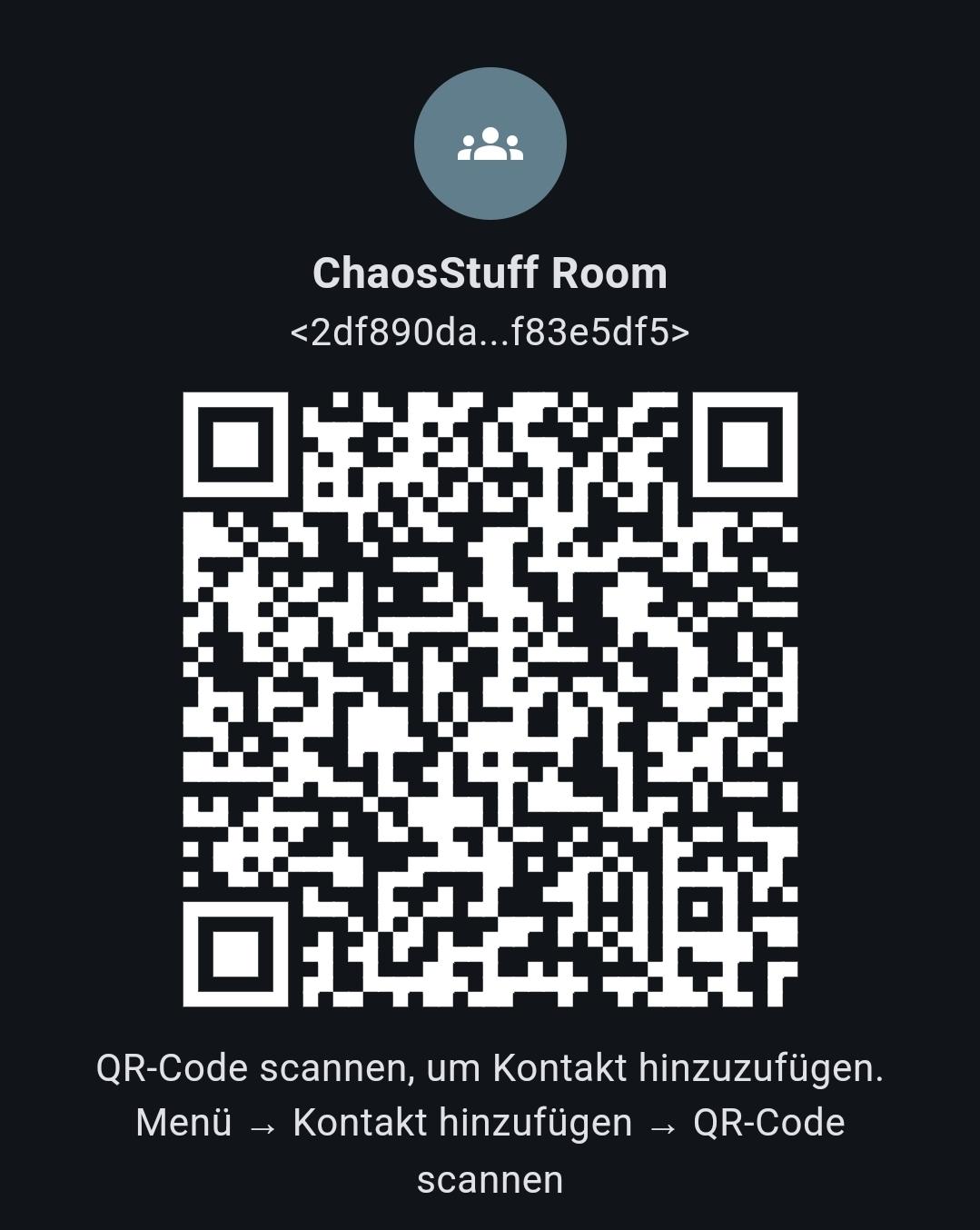 | Chaosstuff Room | Room Server located in our Hackerpsace | 2df890da379f3056c2dbedd6c34045eb7d9747b632e3be97150bc697f83e5df5 |